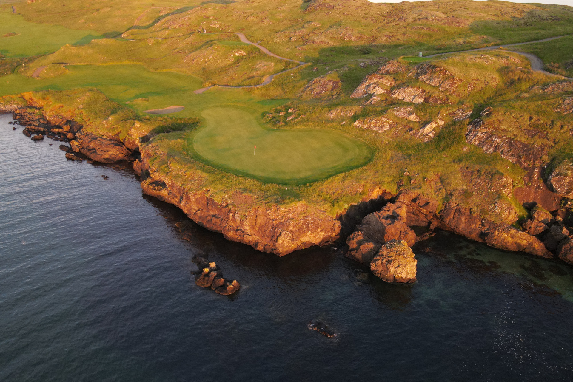 The rocky coastline on the right side marks the out of bounds. Aim to place left of the rocky ridge, but not too far, for the best view of the green.